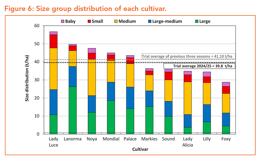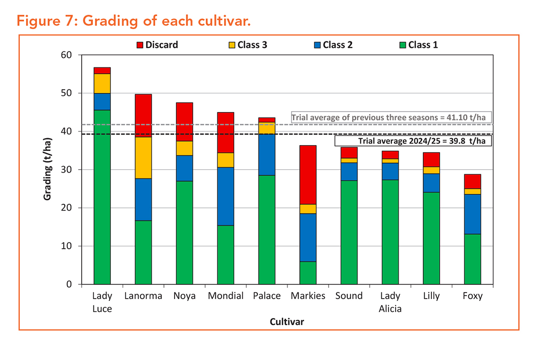 The evaluation of new cultivars, as in the case of the Reitz cultivar trial, provides results relating to yield and marketing index. The marketing index of the cultivars involved is calculated by classing and sorting each cultivar based on quality and size groups (for example Class 1 large or Class 2 large-medium).