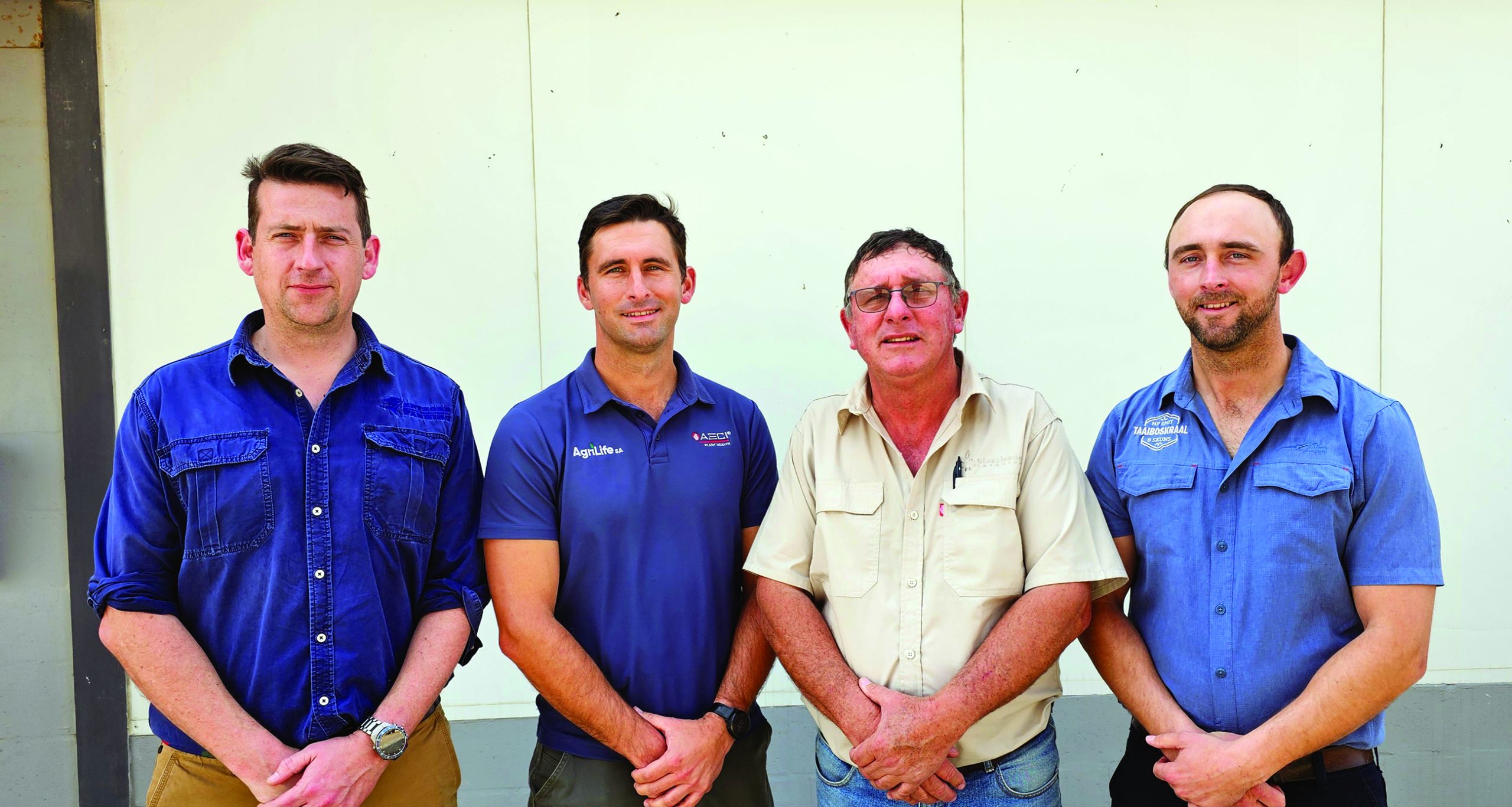 Van links is Murray Thompson, voorsitter van Aartappels SA, saam met Johan, Pierré en