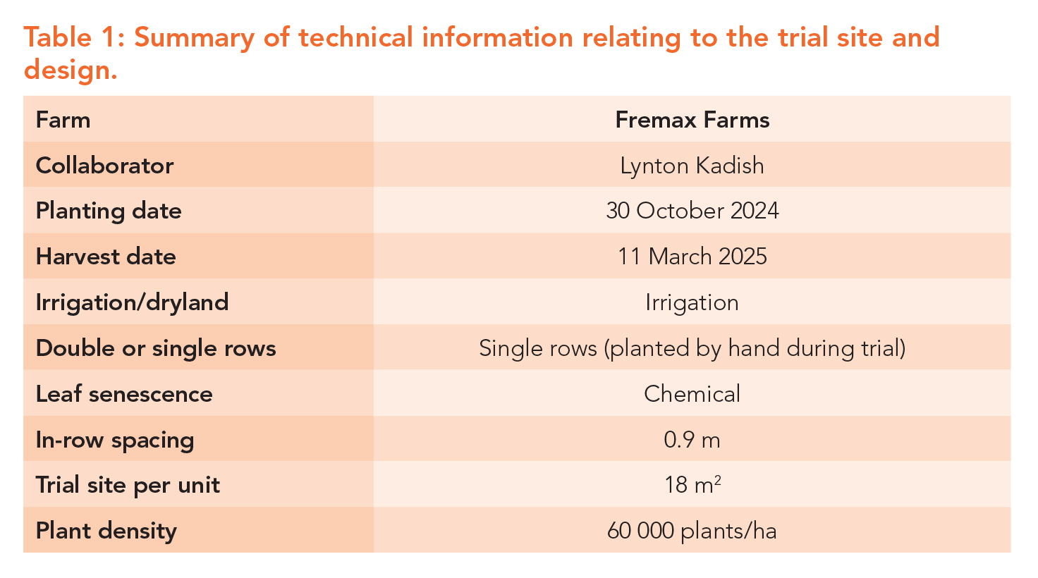 The cultivar trial was conducted near Davel in Mpumalanga’s moderate summer rainfall region.