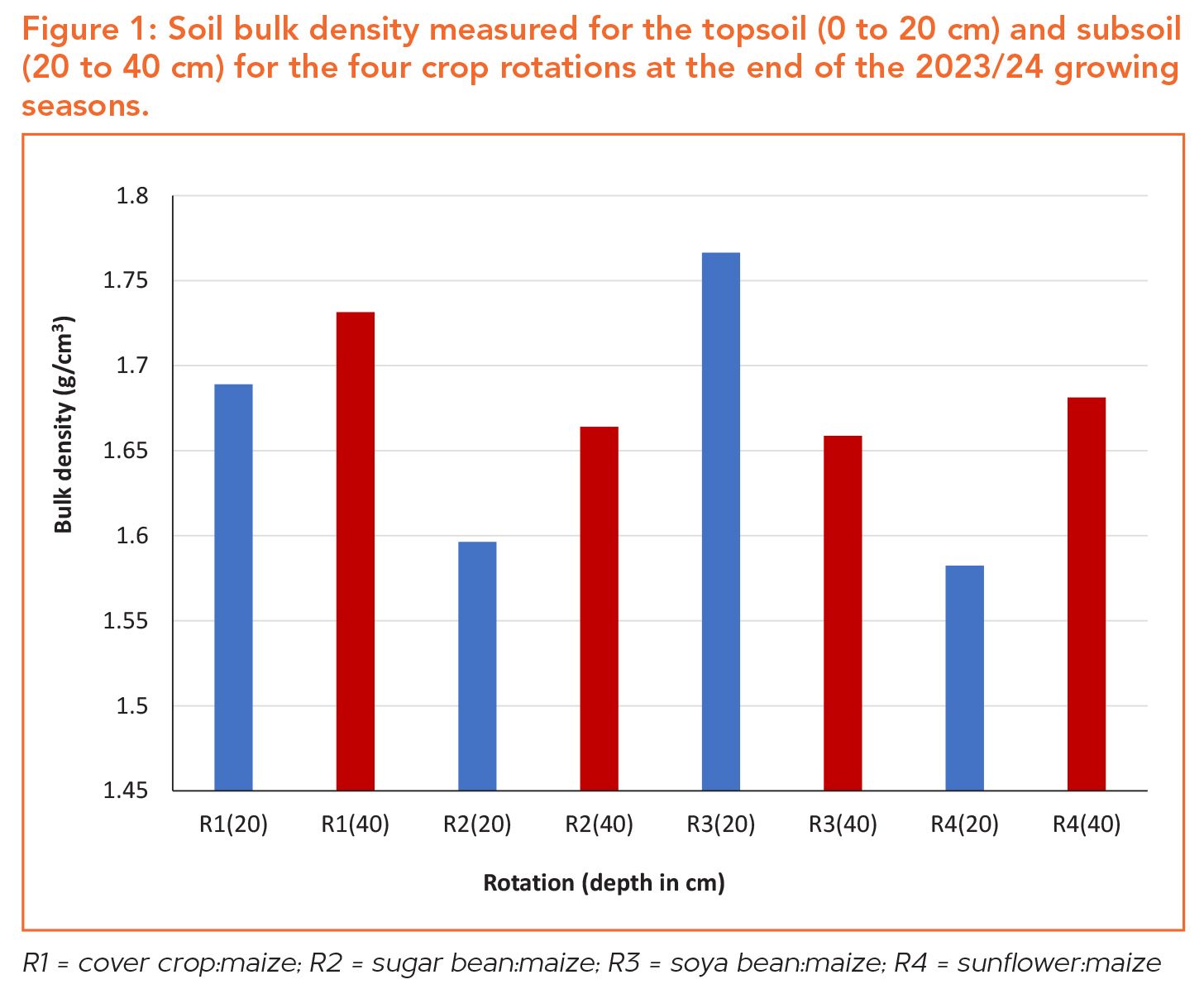 Distinct differences in soil physical properties and yields only started to emerge in the eighth year of this study, emphasising the fact that the benefits of crop rotation can take a long time to manifest. These preliminary results indicate that incorporating cover crops in crop rotation systems can benefit overall soil health and quality.