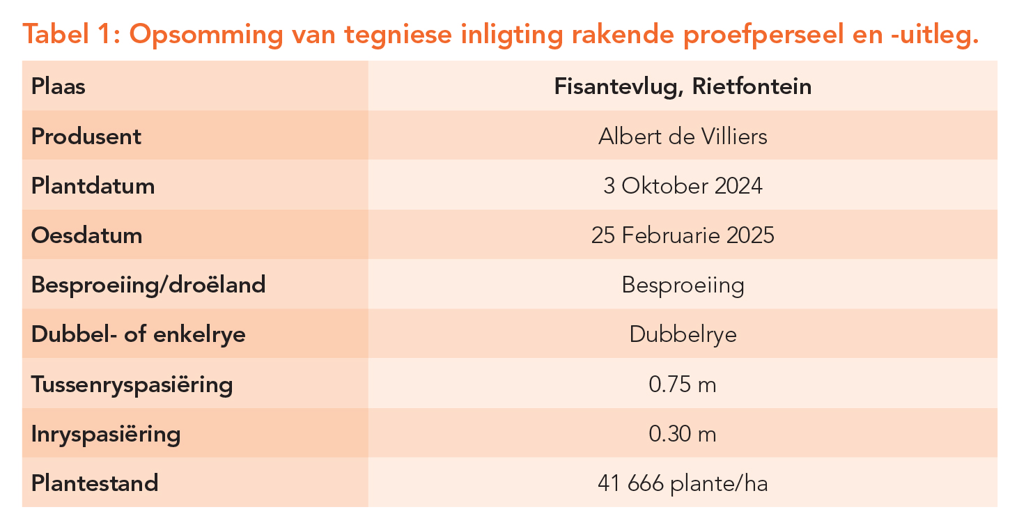 Sandveld-kultivarproef onder besproeiing op Aurora in 2024/25