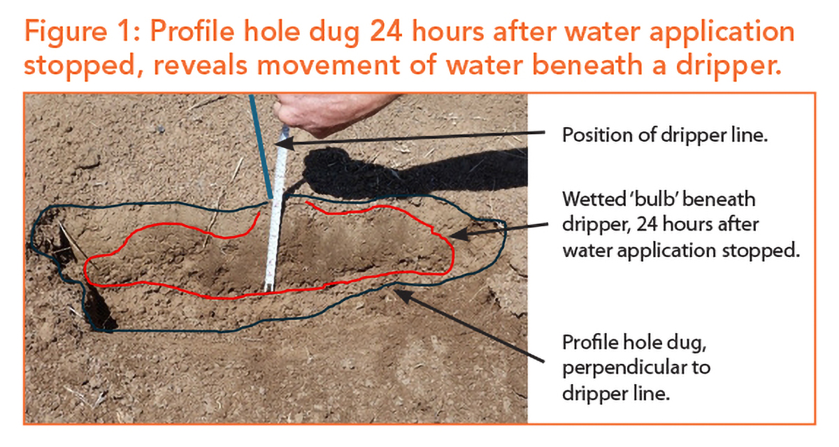 Importantly, when using low-flow drip irrigation and its associated precision irrigation technology, regular measurement of soil moisture and plant water requirements must be taken into consideration for weekly irrigation planning purposes.