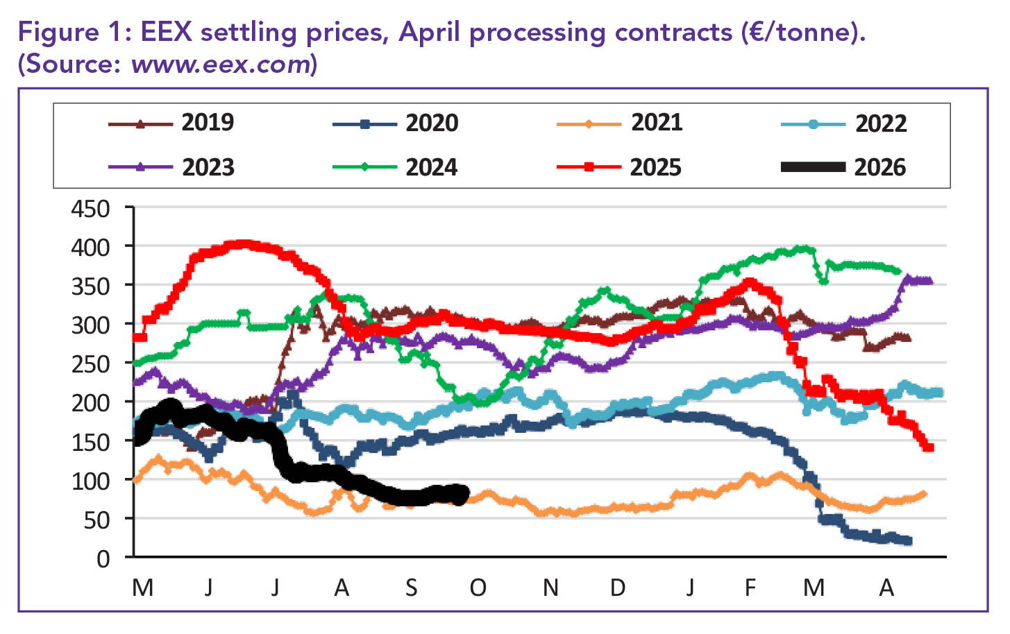 While export prices held steady week-on-week, the bulk Agata benchmark slipped to €140 per tonne, dipping below 2020/21 levels. This reflects ongoing weakness in both domestic and export markets.