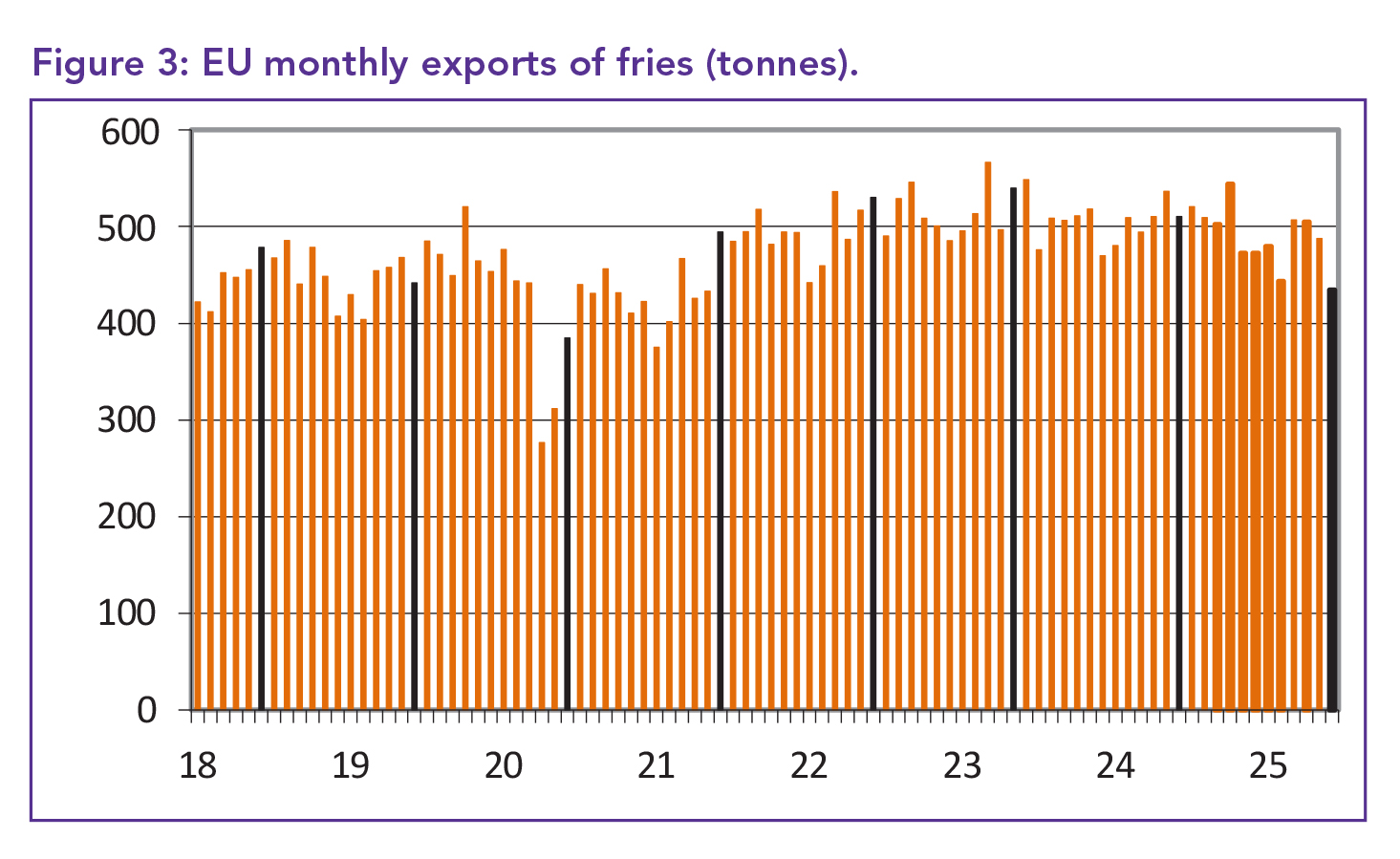 Despite these short-term setbacks, global frozen fry exports over the past 12 months rose by 1.4%, reaching 9.208 million tonnes – representing a strong 13.4% increase since 2019.