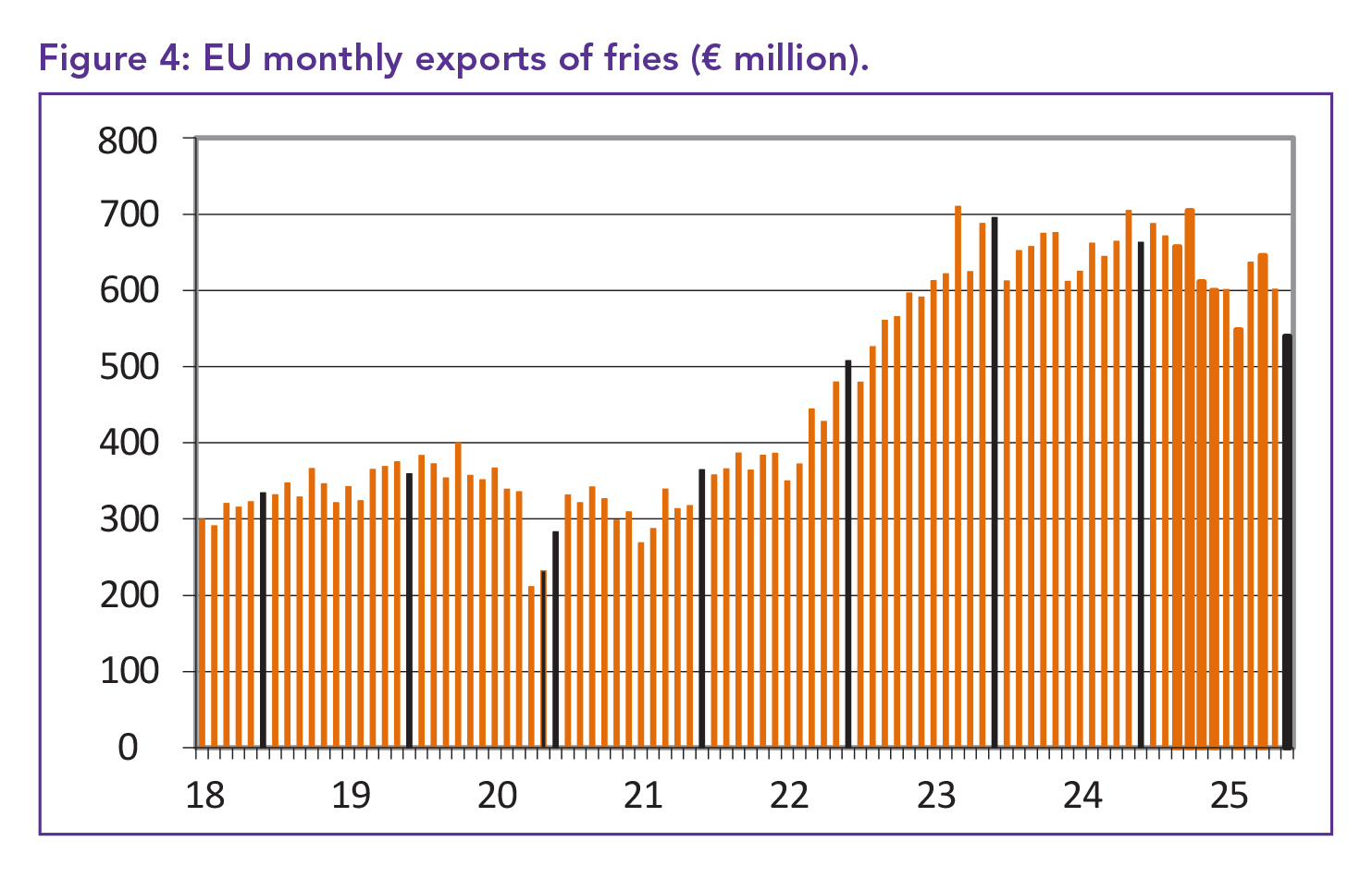 The EU frozen fry export market began the new season in July on a cautiously optimistic note, with global sales (excluding the United Kingdom [UK]) rising by 3 500 tonnes compared to June, reaching 153 288 tonnes – an increase of 7.8% year-on-year (YOY).
