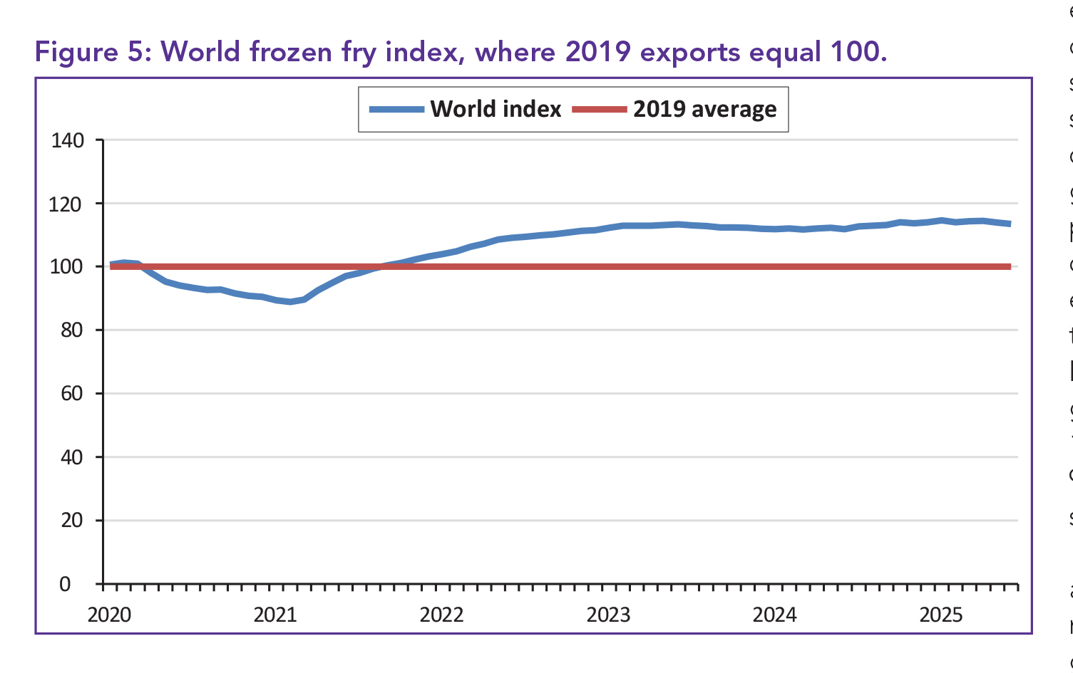- Belgian fries were priced at US$1 348/tonne, a 65% increase compared to 2019.