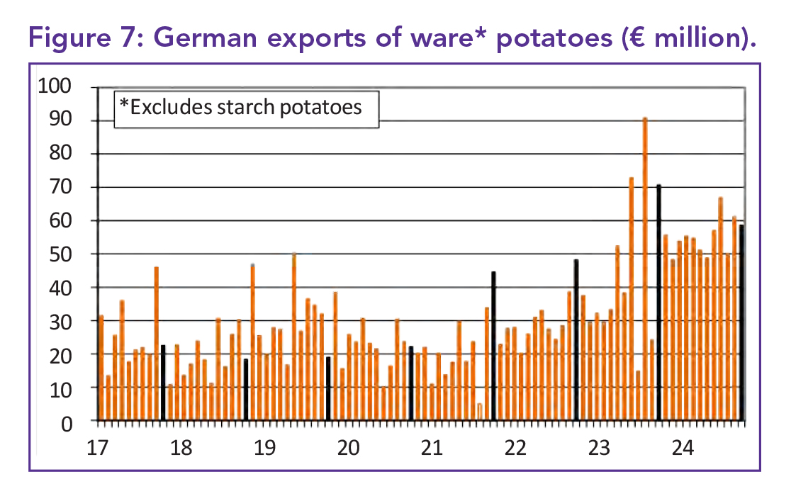 Most of the increase in potato production came from Asia, with India producing more than 60 million tonnes in 2023. Potato production also increased by more than ten million tonnes in the last decade. This increase saw a rise in exports from the world’s two largest potato producers, with record fry exports from China in November last year reaching 24 178 tonnes, a 3 550-tonne increase from 2023.