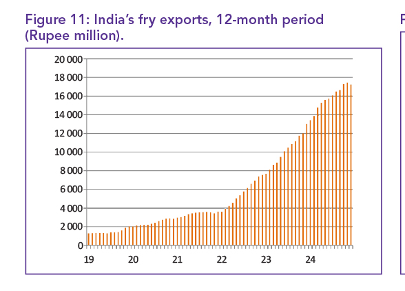 India’s frozen fry exports dipped 5.8% year-on-year in December last year, marking the first decline since April 2023 (Figure 11).