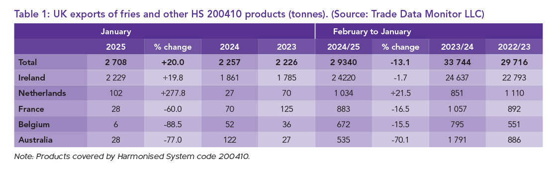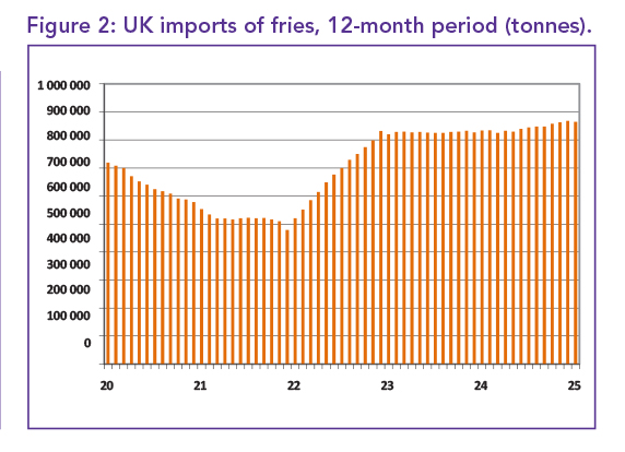 Consumer demand for fries in the United Kingdom (UK) remained sluggish in January, leading to a 4.3% year-on-year drop in imports to 68 042 tonnes – 1 000 tonnes lower than in December (Figure 2).